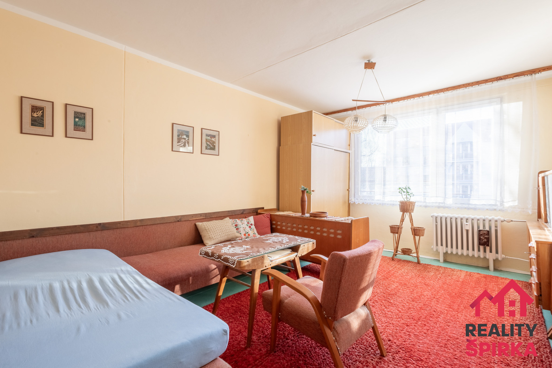 Dispozice bytu: chodba, koupelna, WC, komora, kuchyň s jídelnou, obývák a ložnice. Jádro umakart. Vytápění bytu a ohřev vody je řešeno dálkově. Okna plastová. K bytu náleží sklep a společné prostory.