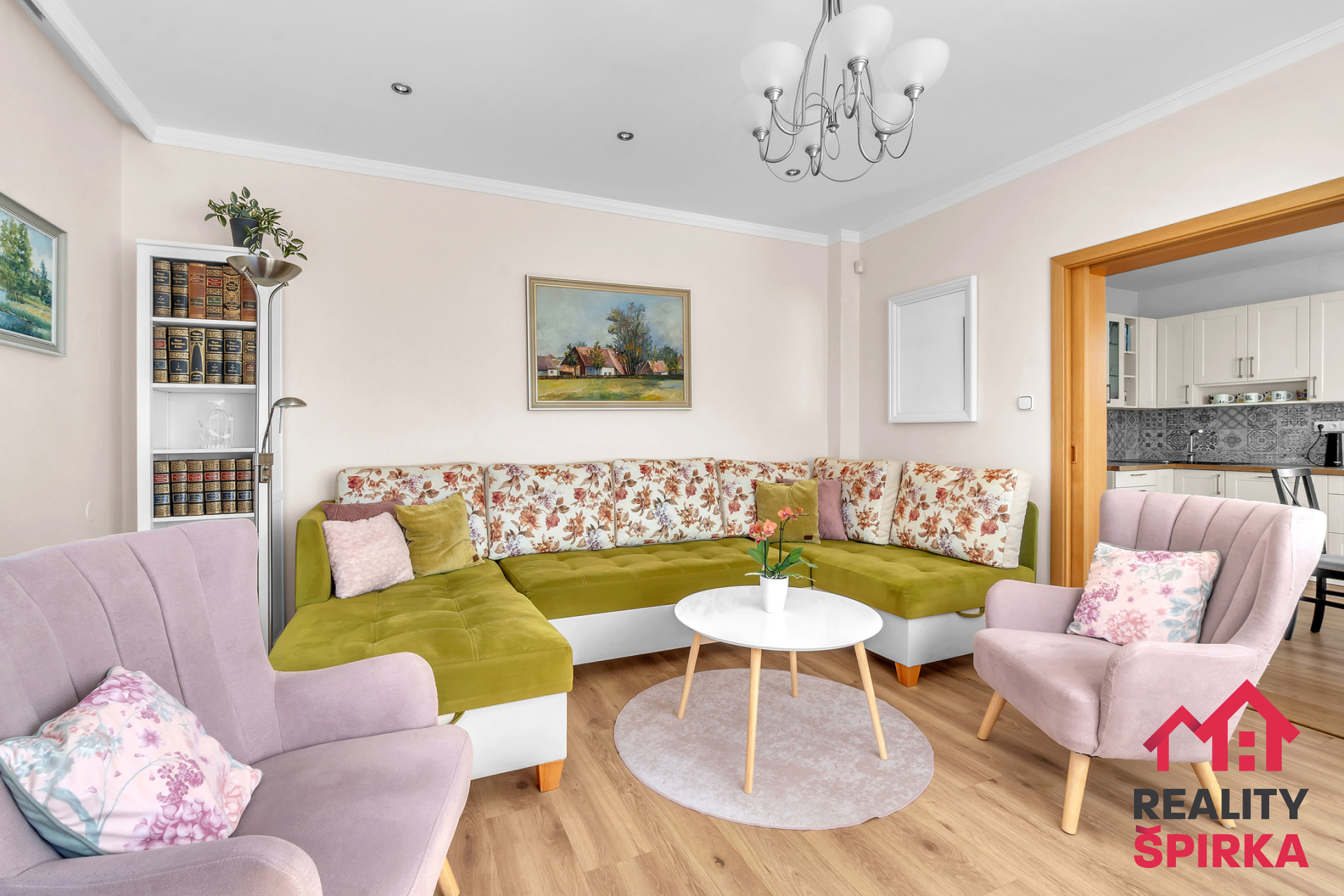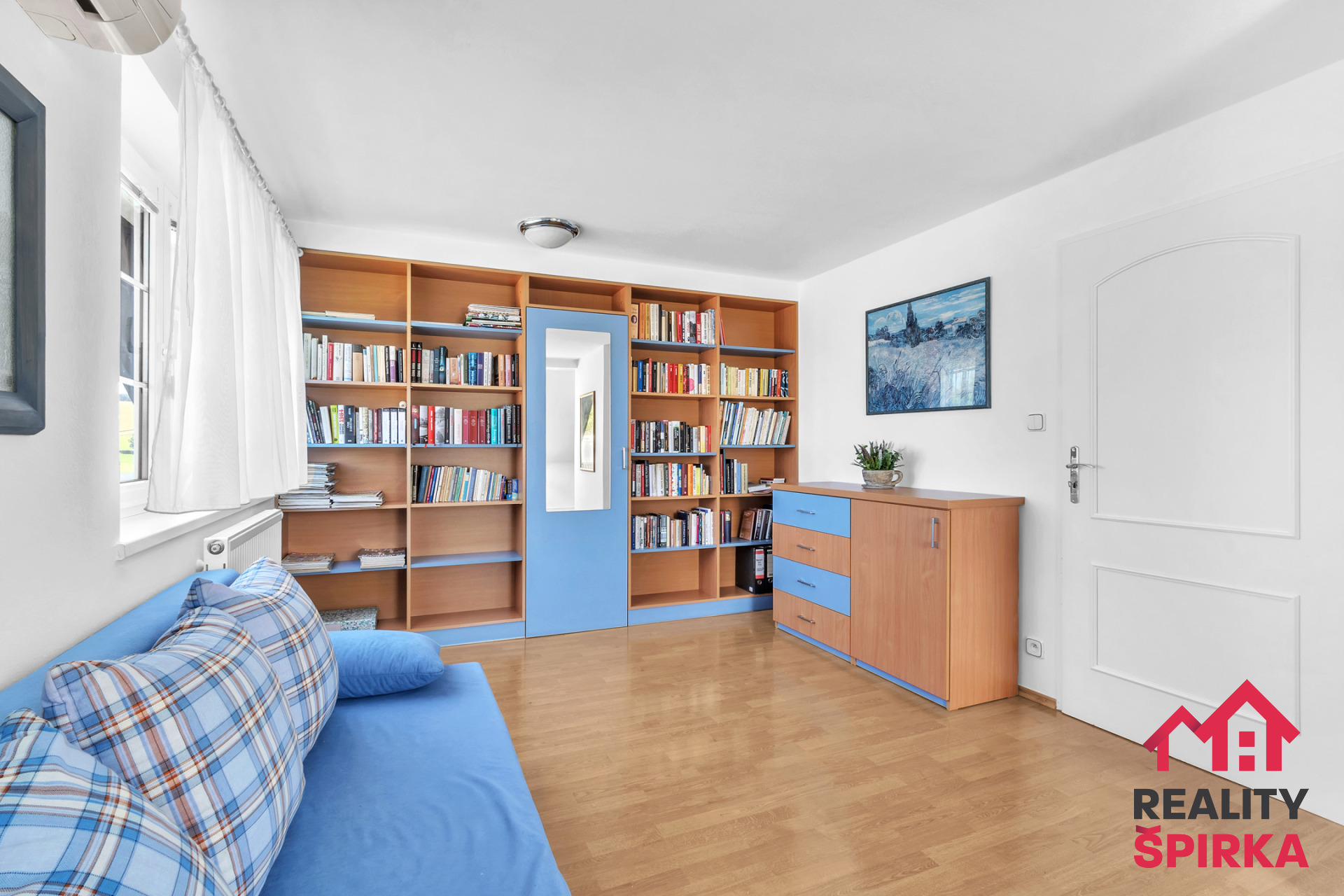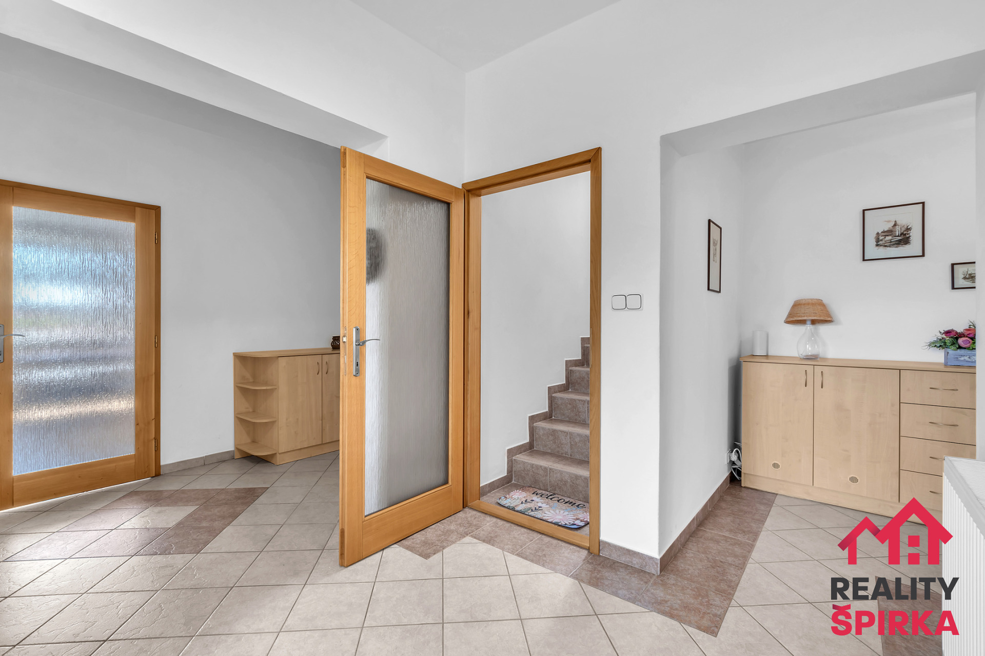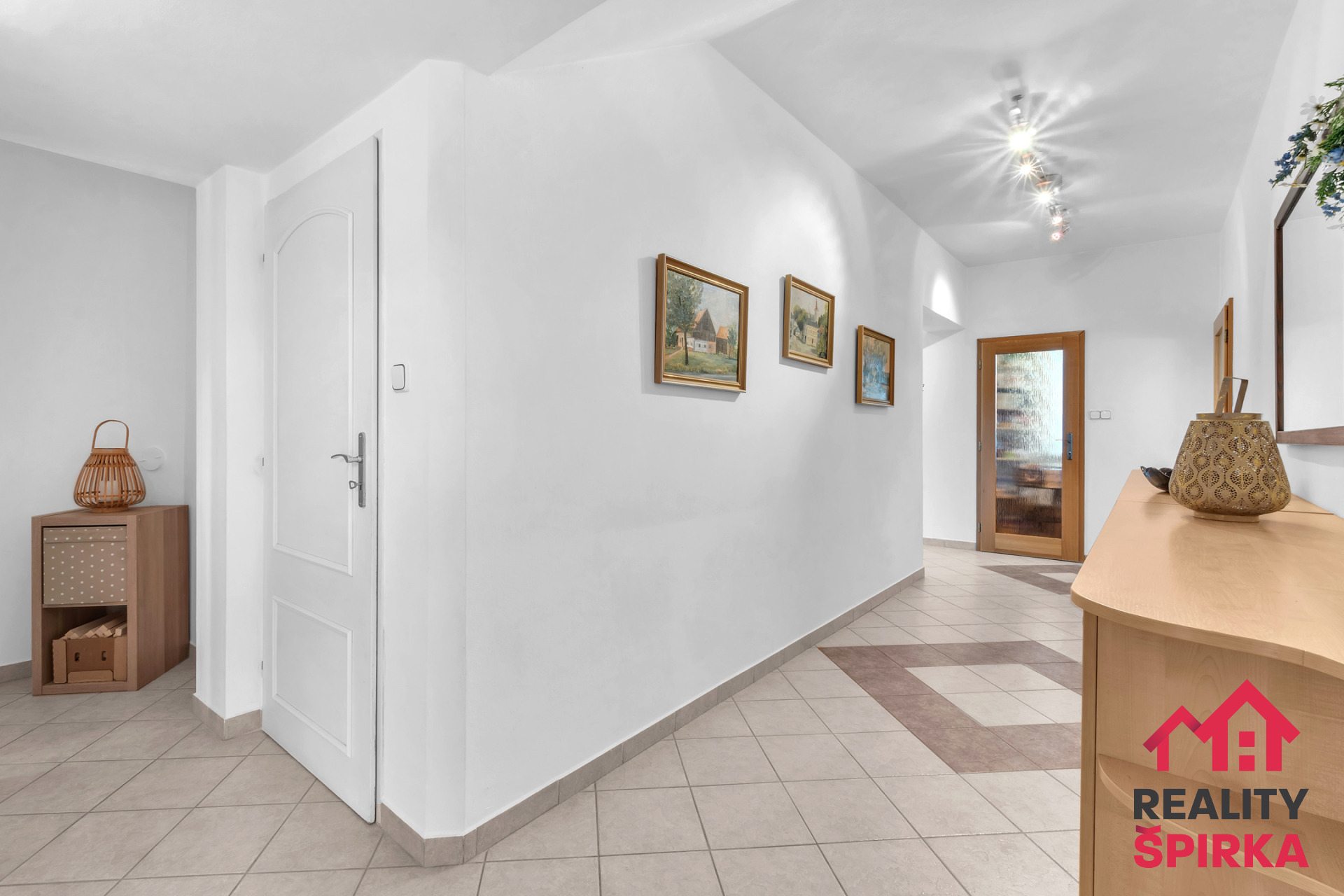 Přízemí: výměra cca 122 m2 - obývací kuchyně, obývací pokoj, ložnice s výstupem do zimní zahrady, pracovna s šatnou, prostorná chodba s úložným prostorem, bezbariérová koupelna s rohovou vanou, sprchovým koutem a WC, prádelna, samostatné WC. Podkroví: výměra cca 111 m2 - 2x prostorný dětský pokoj s vlastní šatnou, ložnice s vlastní šatnou, pracovna či pokoj pro hosty, koupelna s vanou a WC.